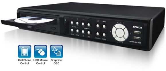 AVTECH presenta su DVR Pentaplex H.264 AVC793ZCD para 4 cámaras: Monitoreo, Reproducción, Grabación, Transmisión por Internet en Formato H.264 y Respaldo USB&DVD simultáneamente.El AVC793ZCD es un sistema diseñado para aplicaciones donde el monitoreo y la grabación de evidencia son críticas, tiene un manejo excepcional mediante el Iphone através del software Eagle Eyes Plus.
